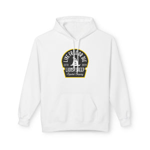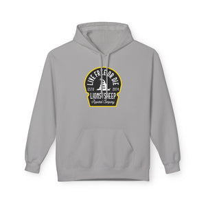 Experience everyday comfort with bold purpose. The Lions Not Sheep "Live Free or Die" Softstyle Fleece Hoodie is crafted from an ultra-soft blend of 80% ring-spun cotton and 20% polyester, featuring a 100% cotton face that delivers a smooth, premium feel. (Dark Heather is 50/50 cotton/polyester, Sport Grey is 75/25 cotton/polyester.)
