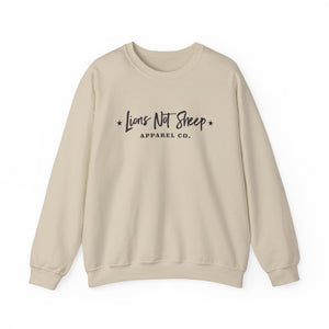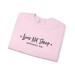 Experience everyday comfort with bold purpose. The Lions Not Sheep "Apparel Co." Unisex Crewneck Sweatshirt is a unisex heavy blend made from a soft yet durable 50/50 cotton-polyester fabric, providing both warmth and longevity. Its smooth surface ensures crisp, detailed prints and embroidery, while the ribbed-knit collar and reinforced cuffs maintain shape and structure through repeated wear. Designed for comfort, strength, and clean aesthetics — it’s built to last and made to inspire.